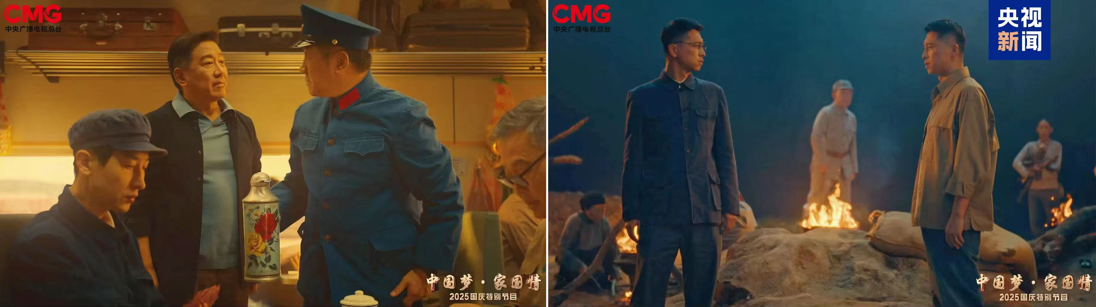 今年的国庆特别节目,采用全外景拍摄方式,进一步丰富了歌曲表演的场景、情景对话的共情。歌曲《势不可挡》艺术化展现全面推进强国建设、民族复兴伟业的信念信心;歌曲《胜利荣光》围绕纪念抗战胜利80周年主题,唱响荡气回肠的英雄壮歌;歌曲《山河颂》《谁不说俺家乡好》将新时代中国的壮阔画卷徐徐铺展;情景对话《家·国》巧妙呈现表演者与所饰角色进行的跨时空对话。浓厚的家国情怀在历史时空、艺术时空、情感时空交织融合、自然流淌、直抵人心。