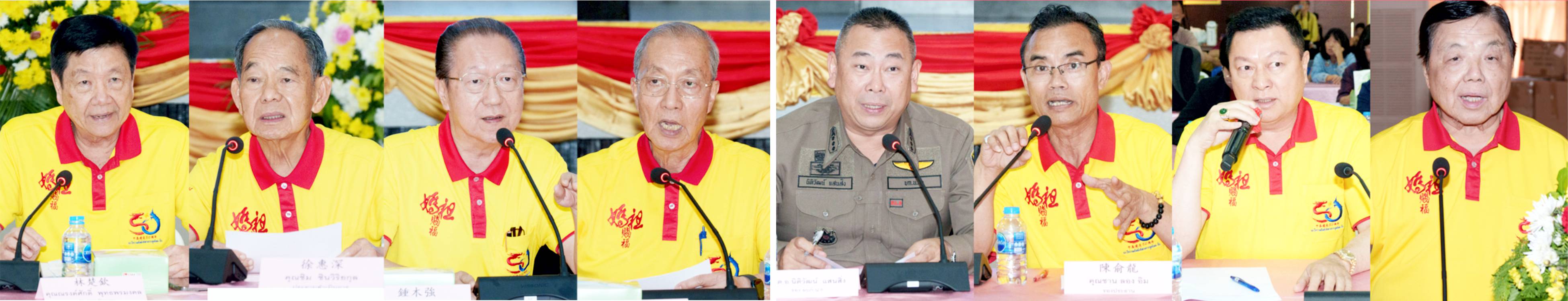 泰国潮州会馆副主席钟木强、泰国林氏宗亲总会理事长林齐锐、泰国泉州晋江联合总会永远荣誉会长陈俞龙、曼谷第六区警副指挥尼滴瓦·盛信警上校分别在新闻会上发言,介绍活动的相关情况及交通秩序管理。“湄洲妈祖巡安泰国”活动将由中国福建湄洲妈祖祖庙董事会主导的五百人护法信众于11月21日从湄洲岛起驾,22日乘包机于当日中午抵达曼谷国际机场,由车队护送于下午一时抵达潮州会馆前面的仁集路,由宋代装扮的游行队伍护送至泰国潮州会馆驻跸天后行宫,当晚在潮州会馆举行欢迎平安宴。11月23日上午8时开始举行三献礼仪式,8时30分恭迎妈祖圣驾沿石龙军路前往耀华力路的崇圣牌楼临时驻驾,并举行三献礼仪式以及接受民众膜拜,接着徒步绕境耀华力路至叻察旺四角,右转进入石龙军路,途经龙莲禅寺,回到崇圣牌楼;随后返程驻跸泰国潮州会馆天后行宫,当晚举行庆祝宴会。24日早上9时30分隆重举行妈祖祭典仪式。自22日至26日,连续五天四夜,依妈祖祖庙惯例,泰国潮州会馆将全天24小时开放,给予信众前往上香膜拜祈福迎祥。