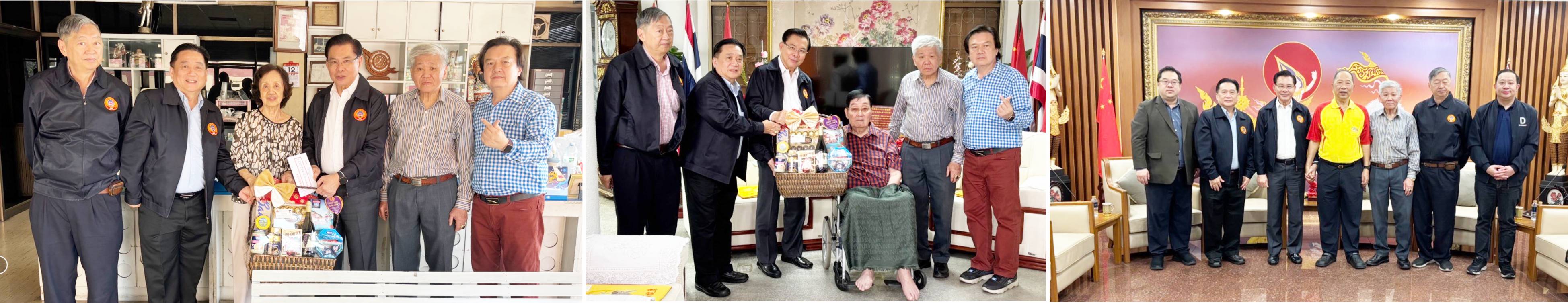 图1:泰国蔡氏宗亲总会理事长蔡秋明(右三),会长委员会副会长蔡衍彬(右二),副理事长蔡瑞光(左二),理事兼福利蔡镇川(右一)赴永远名誉会长兼资深参议蔡华民私邸拜年,其夫人蔡郑季娴代接领礼品花篮。图2:理事长蔡秋明(左三),会长委员会副会长蔡衍彬(右二),副理事长蔡瑞光(左二),理事兼福利蔡镇川(右一)赴名誉会长兼资深参议蔡义批(右三)私邸拜年。 图3:理事长蔡秋明 (左三),会长委员会副会长蔡衍彬(右三),副理事长蔡瑞光(左二),向法学家兼政治评论家、 顾问蔡百山(派山.朴蒙空/中)拜年后,合影留念。