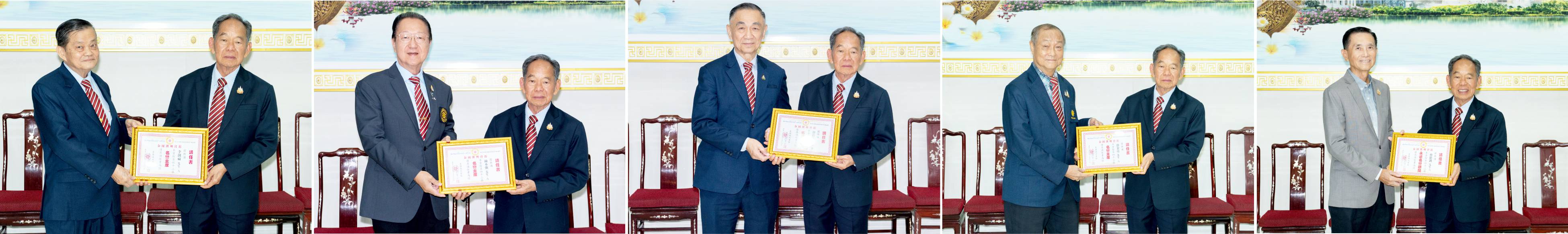 图1:徐惠深主席向李创福先生颁发名誉主席证书。图2:徐惠深主席向钟木强先生颁发名誉主席证书。图3:徐惠深主席向蔡蔚生先生颁发名誉主席证书。图4:徐惠深主席向徐金亮先生颁发名誉主席证书。图5:徐惠深主席向蔡德钊先生颁发永远名誉顾问证书。