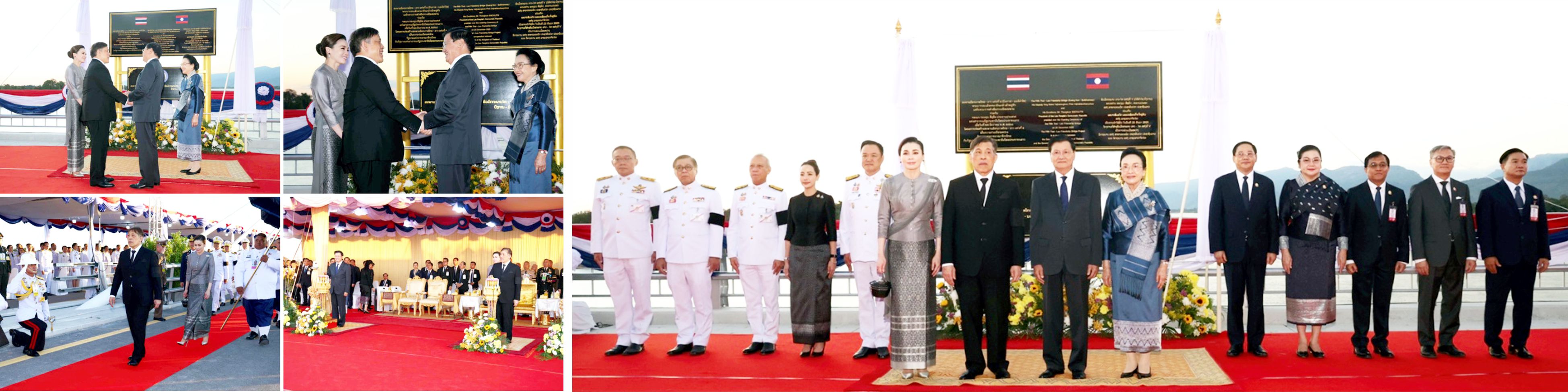 皇上陛下与皇后殿下始终坚定不移地秉承、维护并弘扬先皇普密蓬•阿杜德大帝之遗志,以矢志不渝的决心全力提升国民生活品质。同时,陛下亦致力于维系与世界各国,包括老挝人民民主共和国之间的友好关系。作为血脉相连的亲密邻邦,泰老两国始终以深厚的友谊、相互理解为基础,依托共同传承的文化与传统,保持着历久弥坚的紧密联系。2025年,是泰老两国建交75周年。凭借远见卓识,陛下高度重视发展连接泰国与老挝的基础设施建设。特别是友谊大桥项目,它们不仅是交通通道,更是两国牢固友谊与紧密合作的象征。1994年4月8日,先皇普密蓬•阿杜德大帝与先皇太后诗丽吉曾与当时的老挝国家主席诺哈•冯沙万共同主持第一座泰老友谊大桥(廊开—万象)开通仪式。这方面的皇家功绩切实提升了边境经济潜力,促进了两国人民往来,并推动了湄公河区域经济的可持续共同发展。