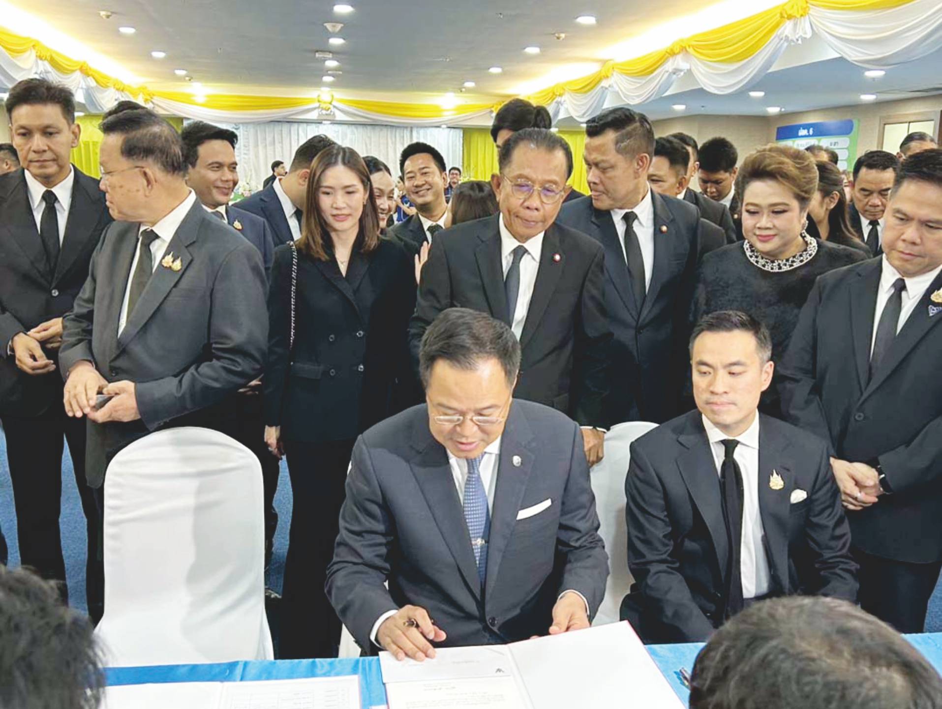 3月5日11时45分,在选举委员会办公室,看守总理兼内政部长阿努廷,以泰自豪党党魁身份,率领多名党内核心成员前来领取议员资格认证文件,包括:素帕玛 、埃纳、沃拉武、塔纳功、讪迪等,以及泰自豪党的名单制议员和选区议员。