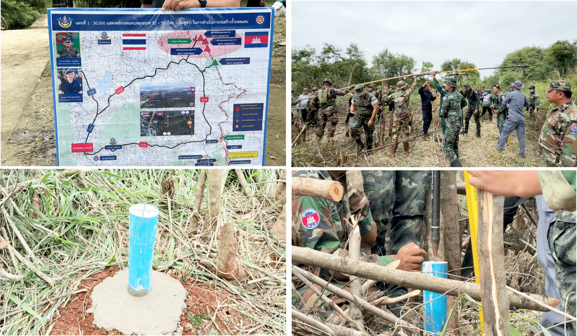 两国之间的临时界碑位于双方道路的中间位置。未来建设的围墙将距离界碑约3米,并沿同一条线路延伸;柬埔寨一侧的道路同样距离界碑约3米,与泰方保持一致。