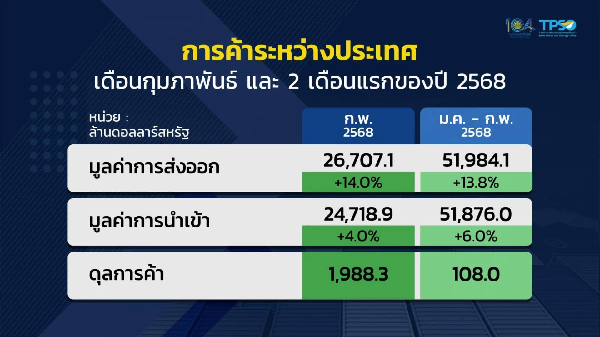 跨境贸易激增37.7%领跑增长 对华出口暴涨80.5% 电子/橡胶产品成核心驱动本报讯(小朱编译)国会大厦消息(2025年3月25日):总理府副发言人萨西甘公布2月泰国边境贸易与跨境贸易数据。当月贸易总额达15435.4亿泰铢,...