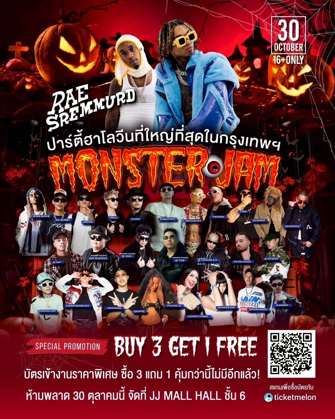 准备好迎接曼谷最大的万圣节盛会吧!地点:乍都节七七广场时间:10月30日 14:00–00:00现场将有世界级艺人 Rae Sremmurd(美国) 表演,以及Twopee、Thaitanium、1MILL、Gunner、Fiixd和超过20位泰国艺人整天轮番登台...