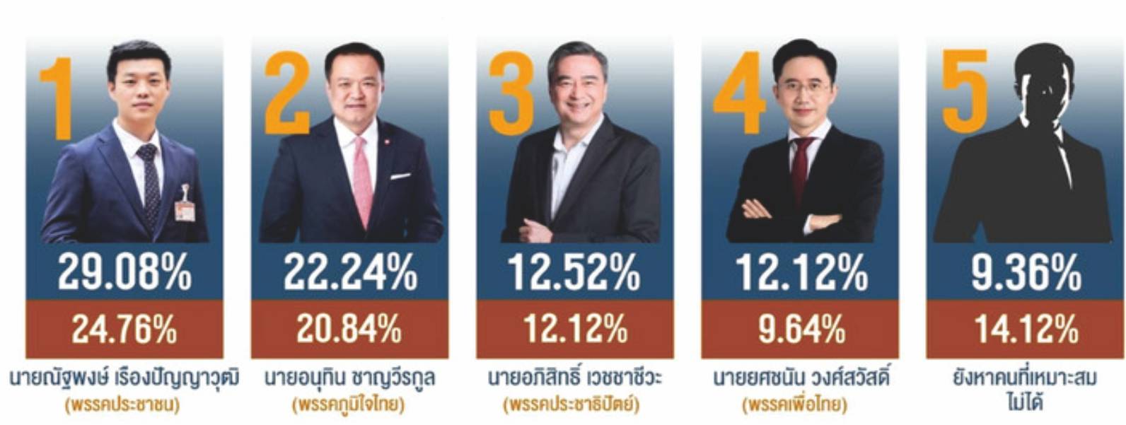 人民党选区制、政党名单制双项支持率超33% 大幅领先泰自豪党等对手本报讯(向敏编译)NIDA民调第二轮、选前最后冲刺阶段显示:纳塔蓬稳居民众支持出任总理首位,其后依次为“阿努廷、阿披实、裕差南”;人民党在选区...
