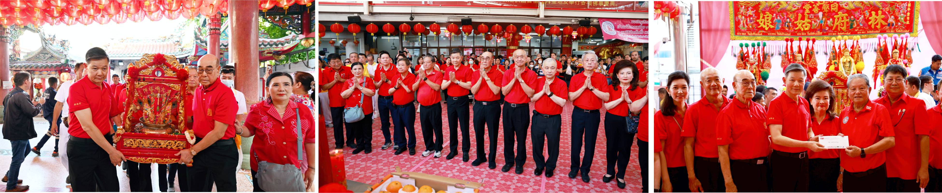 恭拜仪式完毕,报德善堂副董事长徐光辉暨夫人徐胡婵燕捐献敬拜林府姑娘善款两万铢,由同声善堂林松熙董事长接领,并表示深切谢忱。