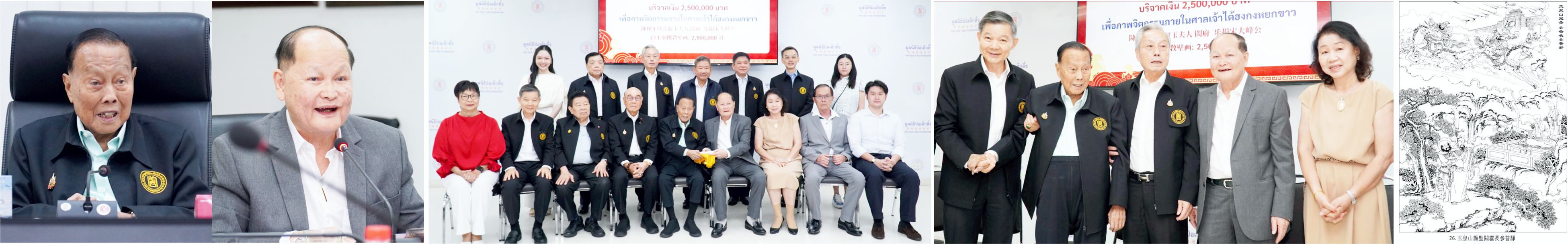 喜结良缘福满门,善心广布泽乾坤。善举流芳传世远,福田广植庆绵长。2026年3月25日上午十时卅分,泰国潮州会馆常务稽核、旅暹普宁同乡会永远荣誉理事长兼参议、泰晟电线厂有限公司董事长陈和年陈许丽玉伉俪、令胞弟陈添银、亲家母刘优秀、令次郎陈周桐刘丽晶伉俪、令媛陈燕婷小姐一行莅临华侨报德善堂,慷慨捐赠250万铢善款,认捐宋大峰公白玉庙围墙第26号壁画,以实际行动支持白玉庙建设工程。报德善堂董事长郑伟昌博士偕同诸位董事热情接待,场面隆重而温馨。