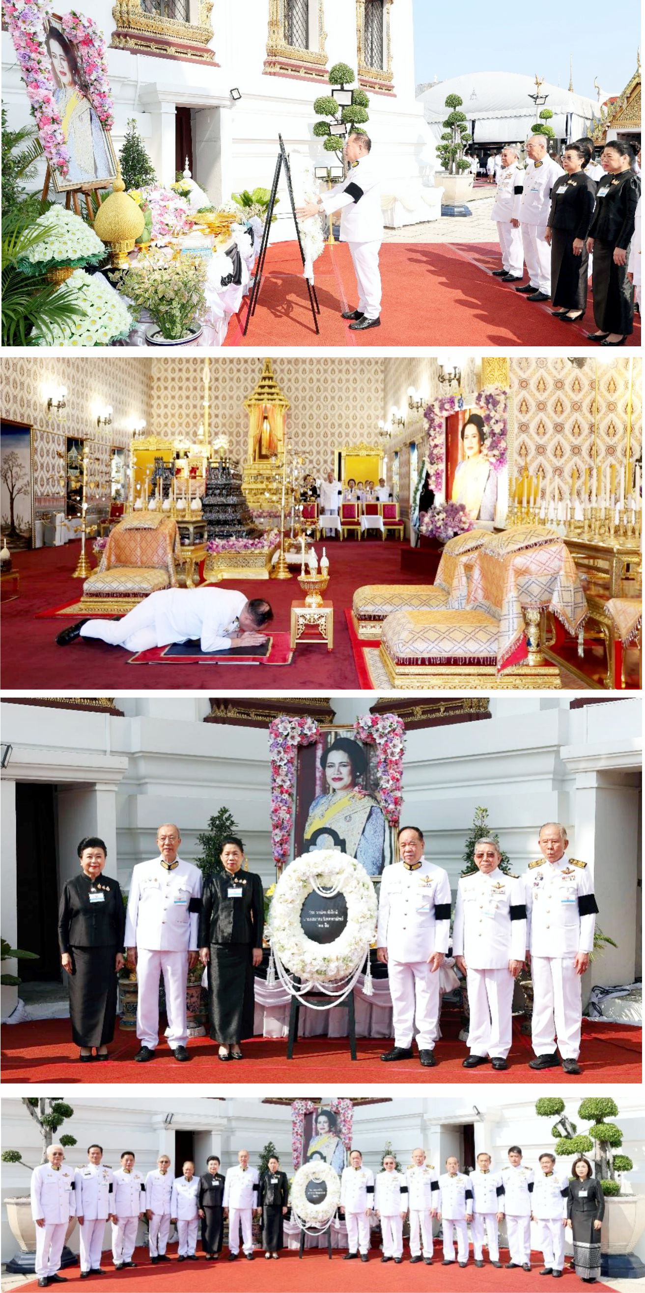 倍受人民爱戴的诗丽吉皇太后,于2025年10月24日薨逝,举国哀悼。2026年3月24日上午,泰华进出口商会理事长林俊然暨夫人,与永远荣誉理事长刘秉青、林齐锐暨夫人,副理事长刘树光、李耀深、林兆祥、罗两德、刘国强、蔡树民、陈耀盛、文国华暨夫人,常务秘书徐建立、常务财政周剑波、常务理事陈贵荣及总干事孙木松等一行,怀着无比悲痛的心情前往大皇宫,参加诗丽吉皇太后升遐百日功德仪式。
