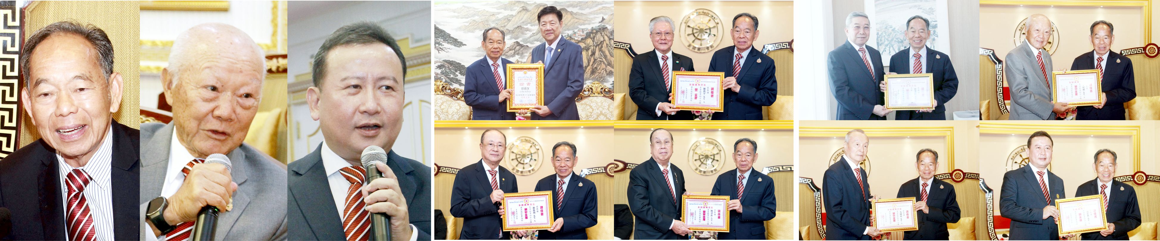 图1:徐惠深主席、荣誉主席李绍祝、荣膺副主席周桂扬分别致词。图2上:徐惠深主席向(左)林楚钦博士(右)陈万平颁发荣誉主席证书。下:徐惠深主席向(左)蒋应初(右)陈锡源颁发荣誉主席证书。图3上 :徐惠深主席向(左)刘秉青(右)李绍祝博士颁发荣誉主席证书。下:徐惠深主席向(左)方成达颁发荣誉主席证书。向(右)周桂扬颁发副主席证书。