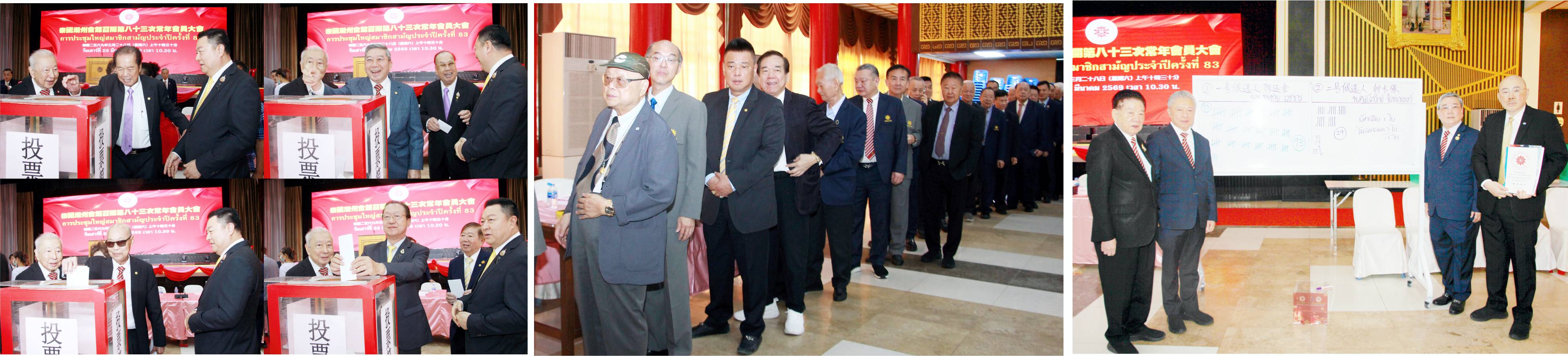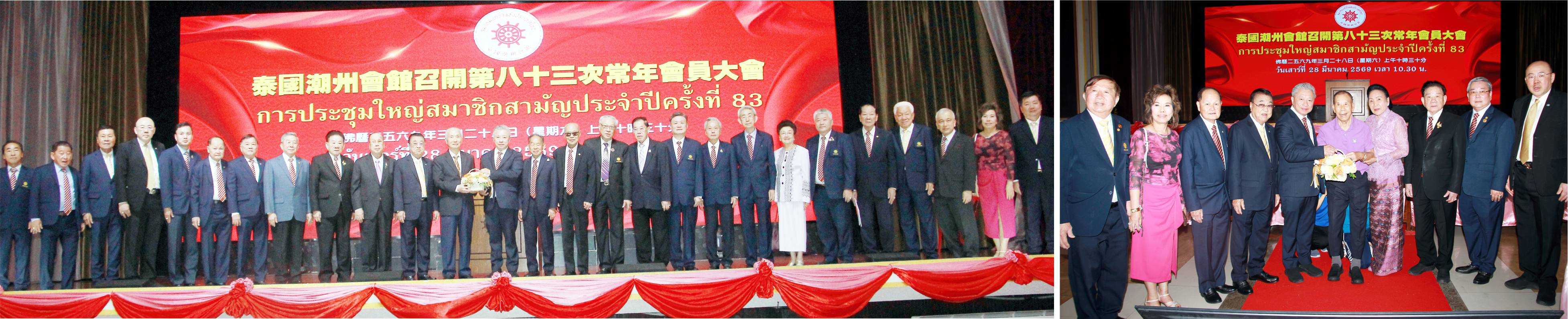 泰国潮州会馆第83次常年会员大会、于2026年3月28日上午在子彬大礼堂举行。大会主席李光隆主持会议,出席者有:永远名誉主席黄迨光博士、荣誉主席王金国、陈振治博士、陈绍扬、王睦良、陈万平、刘锦庭教授、陈锡源、刘秉青、李绍祝、方成达,名誉主席王志民博士、陈运楼、郭木海、陈景辉、马灿伟、陈志鸿、吴长发、张楚宏、林文辉、马信昭、谢玉安、王创业、蔡民强、章德辉、赖婵卿、李惠城、罗振荣,法律顾问洪兴、永远名誉顾问张远发、李鉴川、陈扬钦、李楚雄、陈世岳、陈新国,副主席黄汉良博士、许镇南、李先栋、萧鸿洽、李桂雄、杨潮雄、郑岳龙、邱燕桂、黄烈凯、孙石波、钟灿峰博士、刘汉明、徐位合、陈运金、钟木强、王杏生、蔡蔚生、徐金亮、林玮、徐永潻、廖令金、方松坚、周桂扬、常务秘书李振钦、萧汉铭、李振来、倪武龙、郑惠中、郭璧泉、郑应葵、陆少滨、郑定沛、李嘉淳、陈锦泉、李源潮、周金顺、周振炎、林松源、陈焯辉、李楚瑄、黄炎奎、蔡衍孝、黄玉枝、李先楚、林创光、姚楚杰、陈荣新博士、蔡树民、陈暖华、曾烈、黄源华、洪振铭、许哲思、陈卓平、陈鸿辉,常务财政林伟、蔡文忠、刘树光、陈鸿锐、李炎炎、郭明忠、徐炎光、陈汉强、周英亮、刘淑娟博士,常务稽核陈耀盛、郑木松、陈红玉、林叶明、陈和年、陈仁杰、 陈哲思、曾豪海、蔡培鑫、蔡德钊,常务组织黄增滨、黄永金、庄晓典、王伟文、吴怀智、常务交际林运兴、李剑鹏、陈克全、侯映辉、马逸群、马学光、 李耀深、马蕴华、连剑丰、王祥滨博士,常务文化黄康祺、执委谢少鹏、陈嘉泰、方锦炎等欢聚一堂,总结会务成绩、共谋会务新发展。