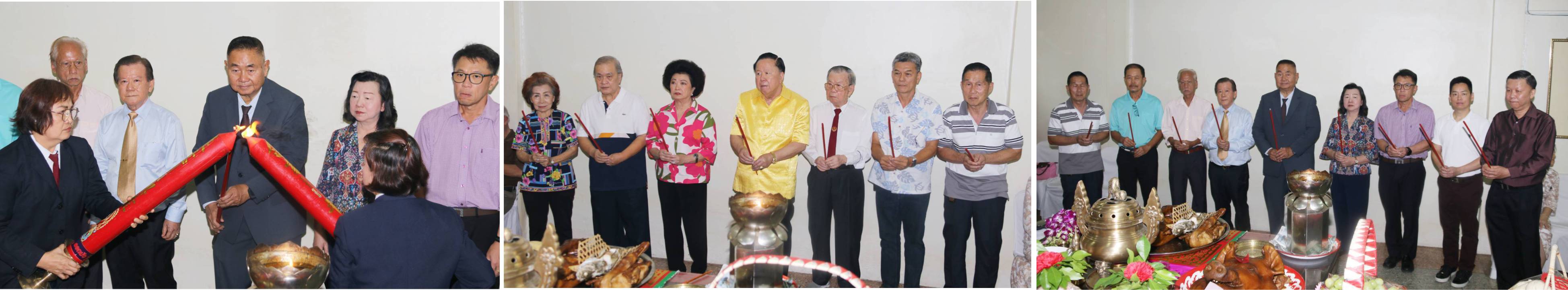 乐助春祭经费者有彭学锐、彭两金、彭大立各2万铢,彭大热、彭桂标各5千铢,彭谢美英4千铢,彭桂林3千铢,彭倪慧卿、彭潮辉、彭招荣、彭松丰、彭国强、彭锦杰各2千铢,彭绍丰、彭展杰各1千铢,彭敬敏5百铢。理事长彭学锐还报效宴席10席,大吉120粒北榄坡名饼,白糖1公斤庄各1百份(盒)功德无量,兰桂庭香。