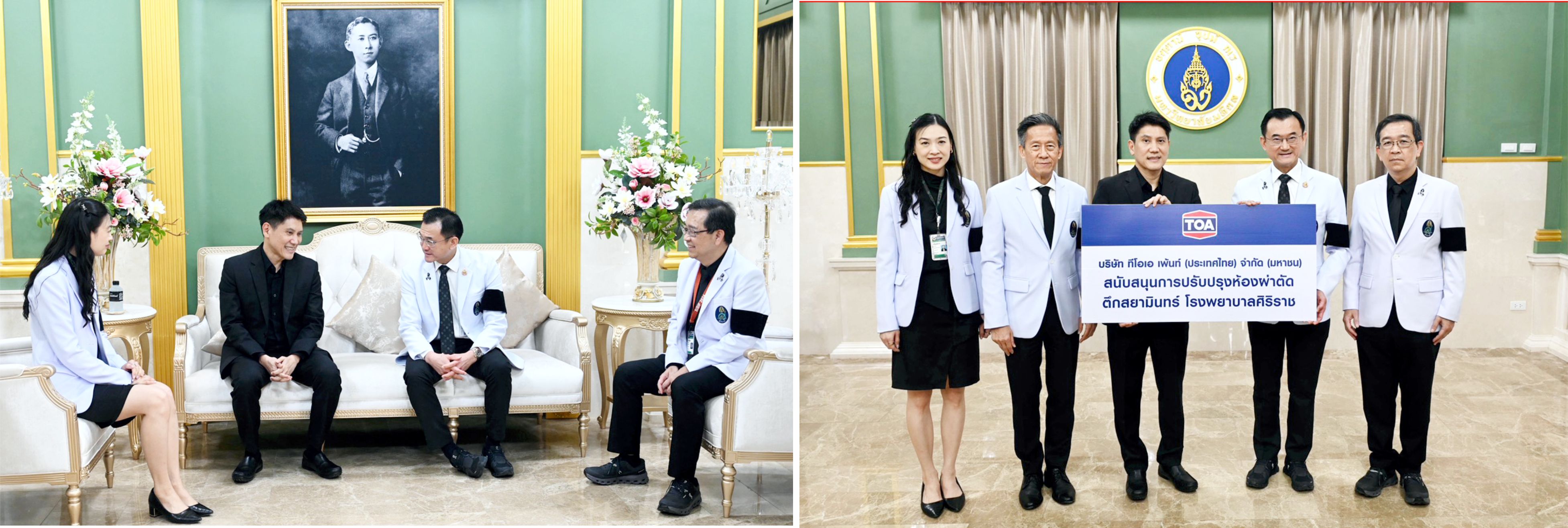 支持院方改善手术室设施 董事总经理陈焕仁移交善款予马松伟医师图左:诗丽叻医学院院长马松伟医师、塔瓦猜教授医师、塔拉副教授医师热情接待TOA集团董事总经理陈焕仁先生并举行会谈。图右:陈焕仁私人捐赠一千万铢,...