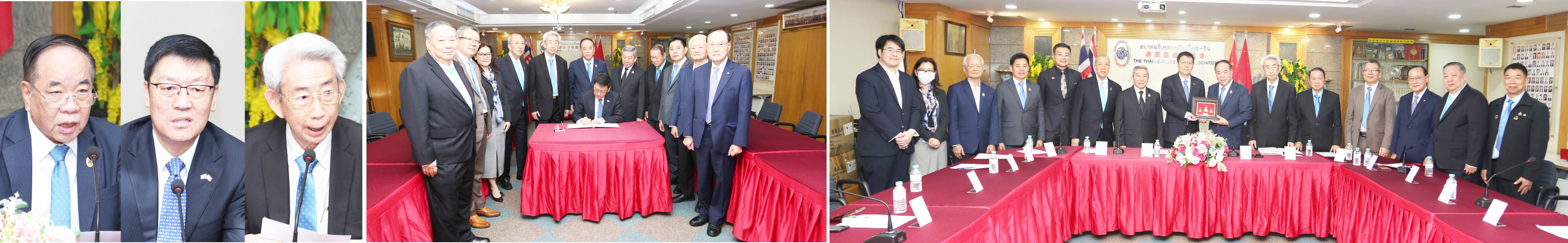 林俊然理事长暨诸领导热烈欢迎 双方就海外侨务工作、泰中友好合作等议题进行交流座谈图1:(左)林俊然理事长致欢迎词时影。(中)孙彦涛参赞致辞时影。(右)永远荣誉理事长在会上发言时影。图2:孙彦涛参赞给泰华进出口商...
