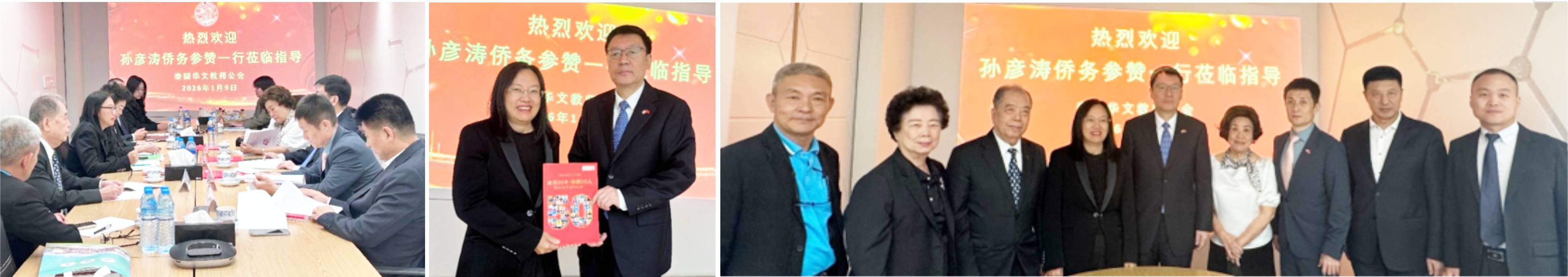 徐惠深主席等热烈欢迎 双方就中泰友好合作及侨务工作进行亲切座谈交流图1:孙彦涛参赞、徐惠深主席分别发言。图2:座谈会现场。图3:徐惠深主席与孙彦涛参赞亲切握手。图:全体首长合影。2025年12月29日上午九时,中...