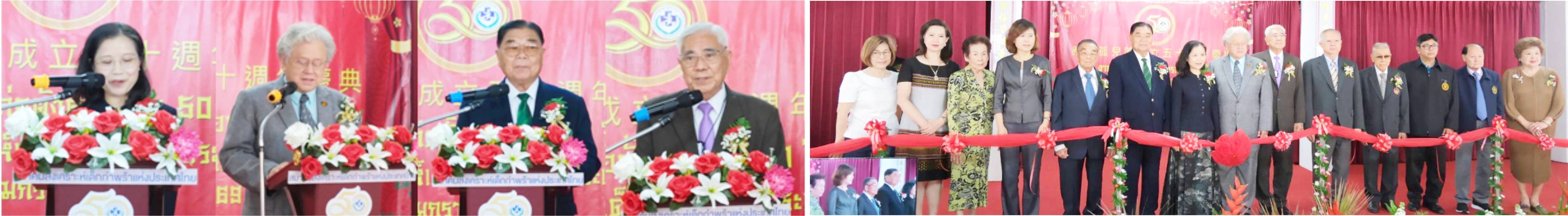 苗海燕大使夫人、陈焕奎董事长致词 各侨团首长 各界嘉宾莅贺图1:(左至右)大使夫人苗海燕女士致词。董事长陈焕奎致开幕词。泰华孤儿院 拉巫拉纳县政府代表Sawai先生致贺词。泰华孤儿院泰京天华慈善医院代董事长林盛先...