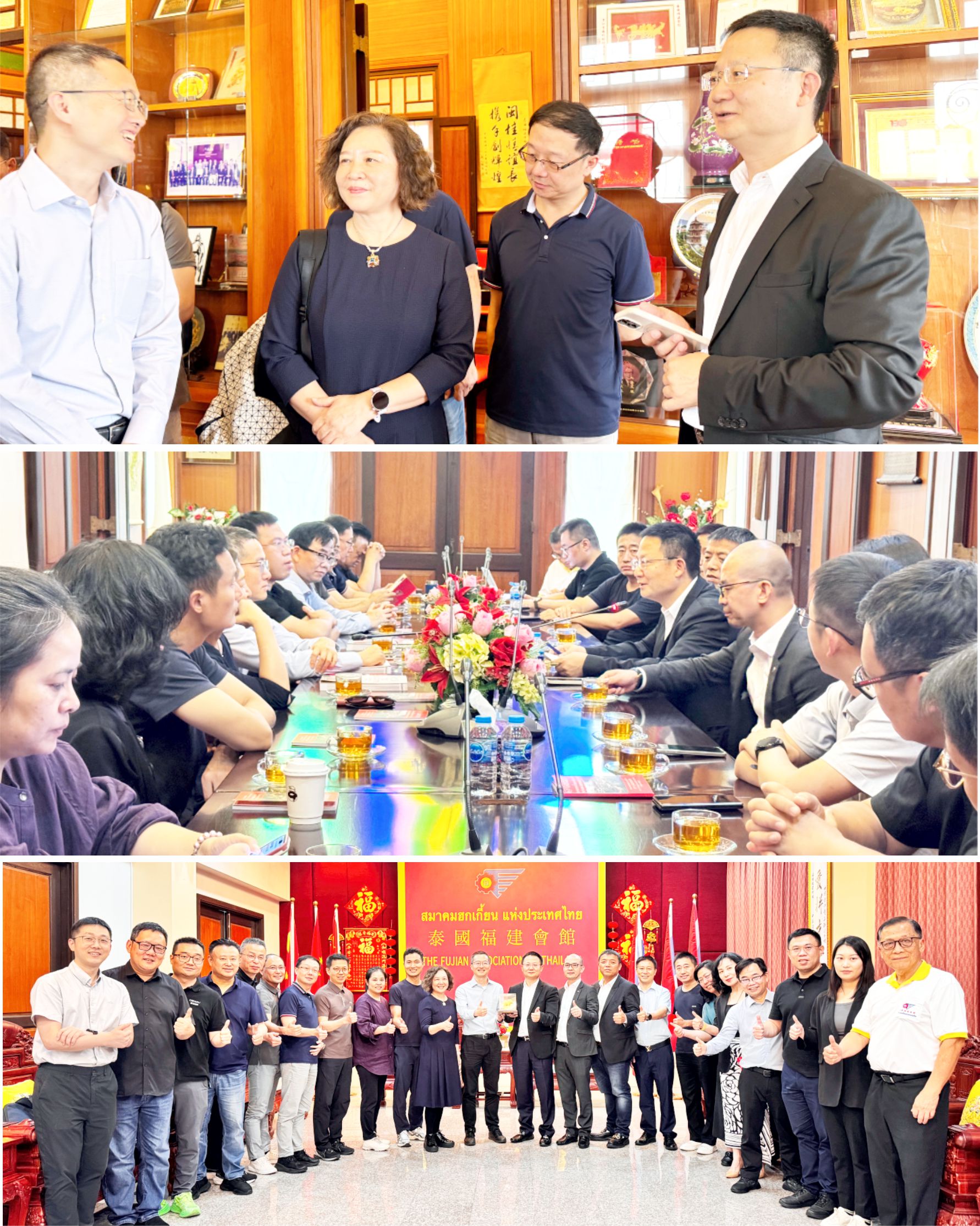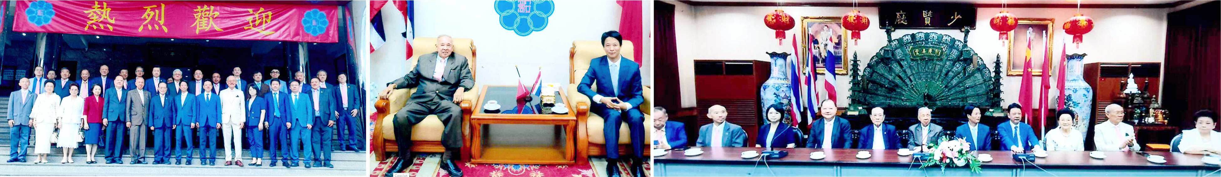 向旅泰乡亲们全面介绍家乡发展情况 代理事长张远发、乡彦陈绍扬等热忱迎宾图左: 访问团和理事会成员于泰国潮安同乡会大厦前合影。 图中:代理事长张远发和访问团团长王文森于会客厅合影。图右:访问团和理事会成员于会...