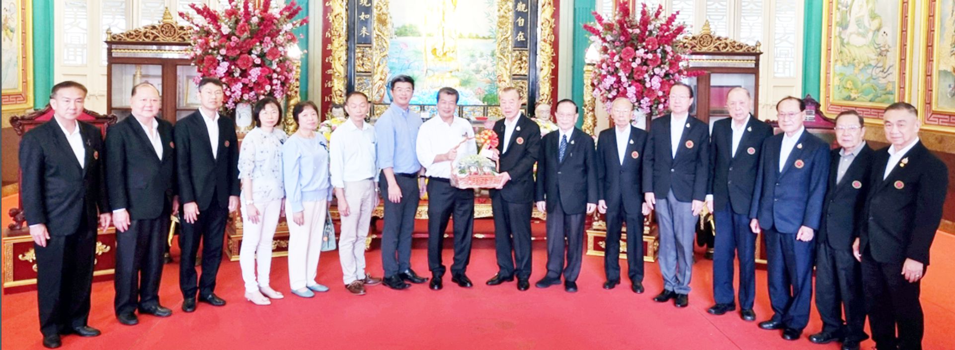中总同仁共捐献700多万铢善款 用以修缮该寺富贵佛祖法身及配套大殿阶台等图1:泰国中华总商会主席林楚钦博士暨夫人林陈丽惜、李桂雄、黄迨光博士、陈金海等代表全体首长敬向仁挚大师呈献法会筹得善款七百多万铢。图2...