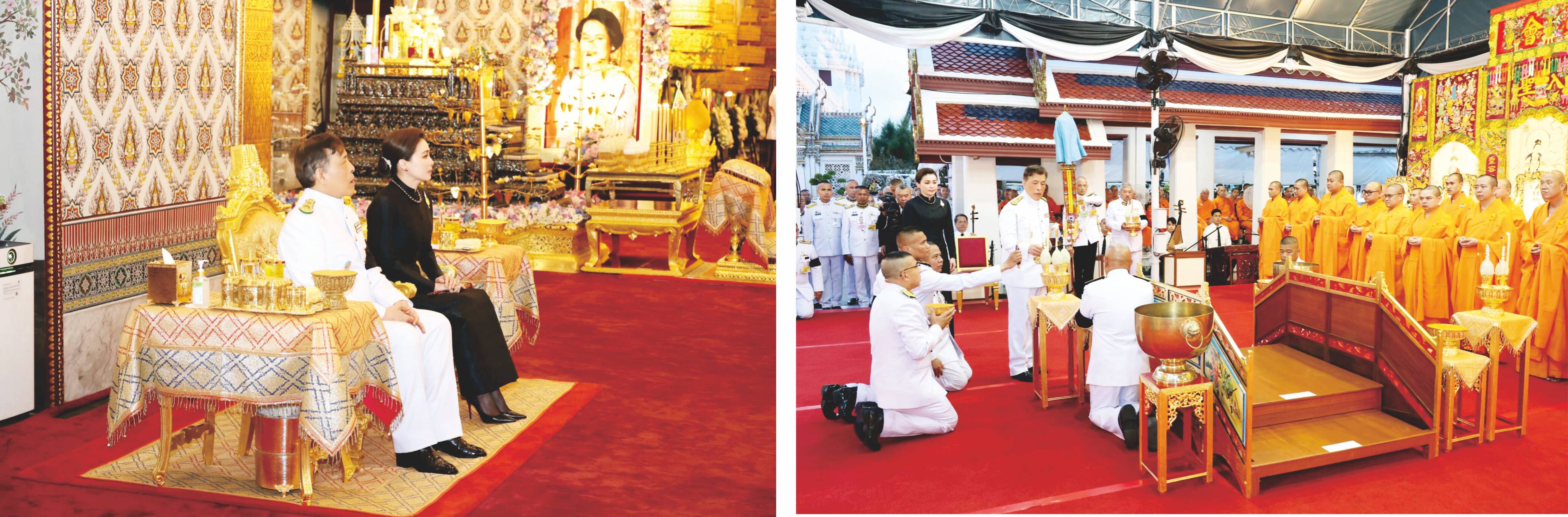 本报讯(橙子编译)4月23日18时11分,玛哈·哇集拉隆功皇上陛下、素提达皇后殿下御驾前往曼谷大皇宫杜西玛哈普拉萨大殿,出席泰国佛教华宗僧团举办的功德法会,祭奠诗丽吉皇太后,皇室宗亲成员随驾同行。